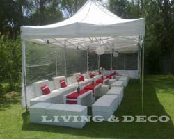 Somos una empresa moderna, eficiente y profesional. Contamos con mobiliario diverso para que tu evento sea de primera calidad. Puff, Mesas, Sillones, Caminos, Centros de Mesa, Gazebos y Carpas Estructurales.